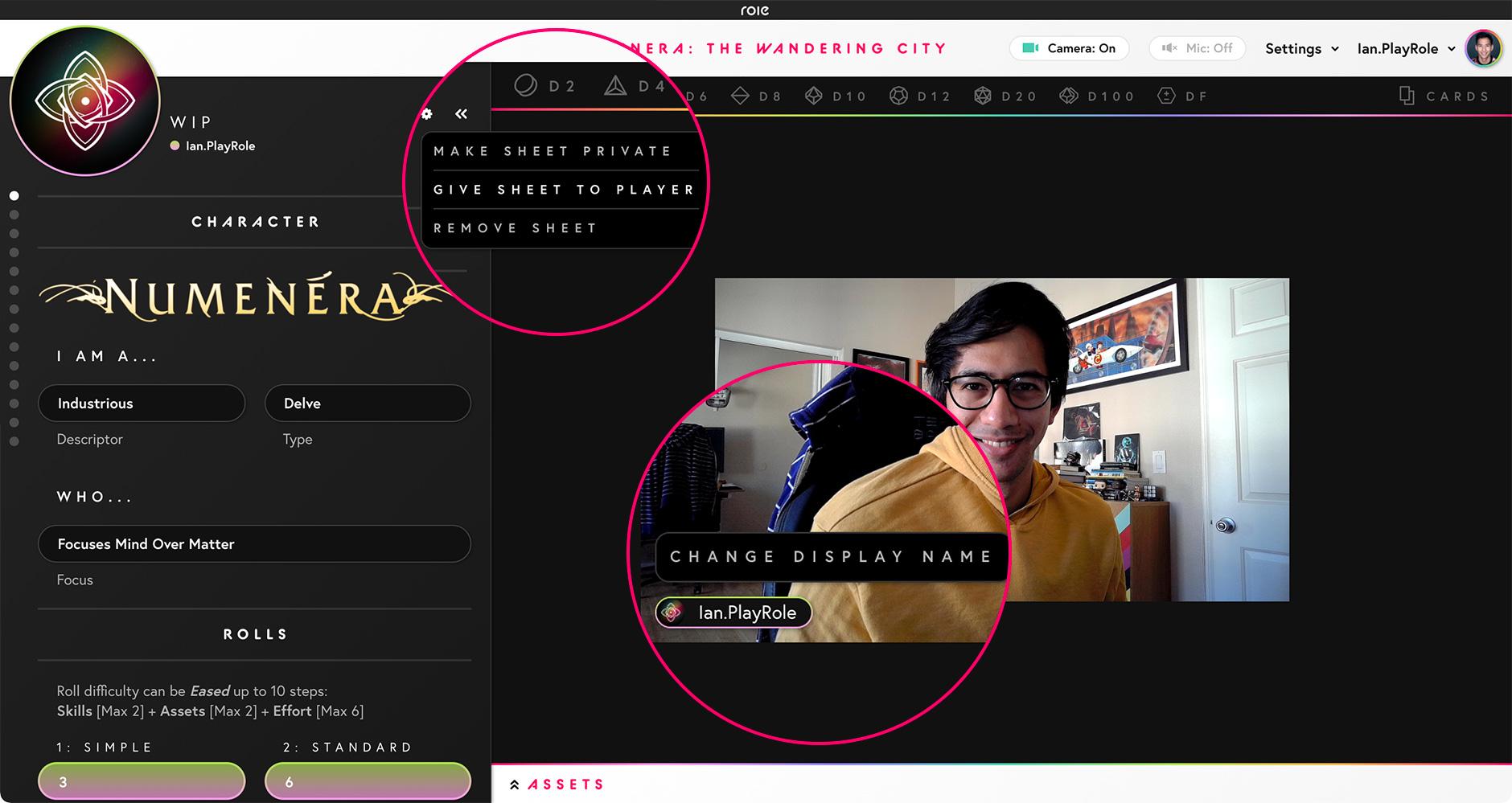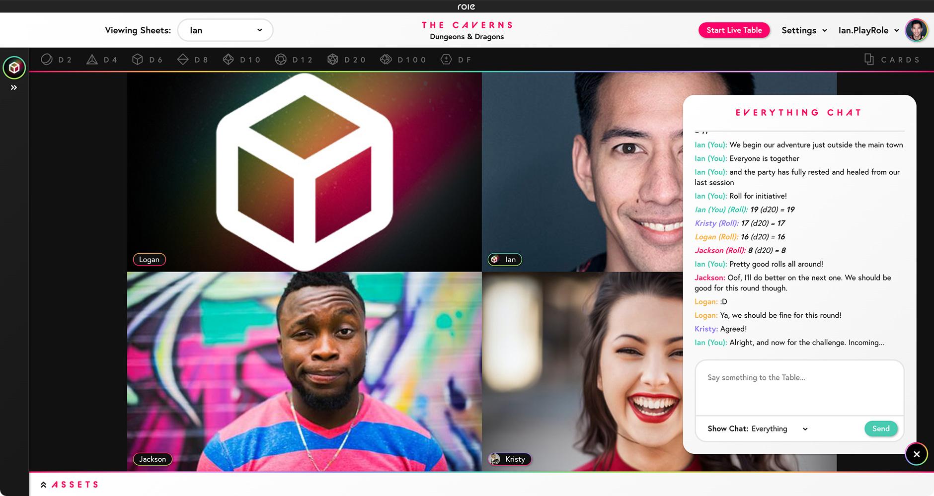 Our goal is to always do our best to keep people front and center when you play on Role. To that end we wanted to find a way to display the Dice Tray without it needing to be a pop-up over people's faces. With this update the Dice Bar is now persistent at the top of your table. When selecting dice from the bar, or selecting a modifier from your sheet, the Dice Tray will now slide down into view. The video thumbnails of people at the table will rearrange themselves so that everyone stays visible allowing you to see them and your roll at the same time!