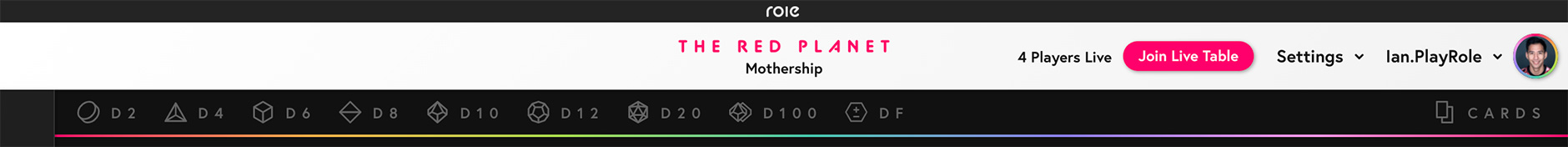 - Moved the Cards button next to the dice, and added Roll button that will toggle open the Dice Tray.